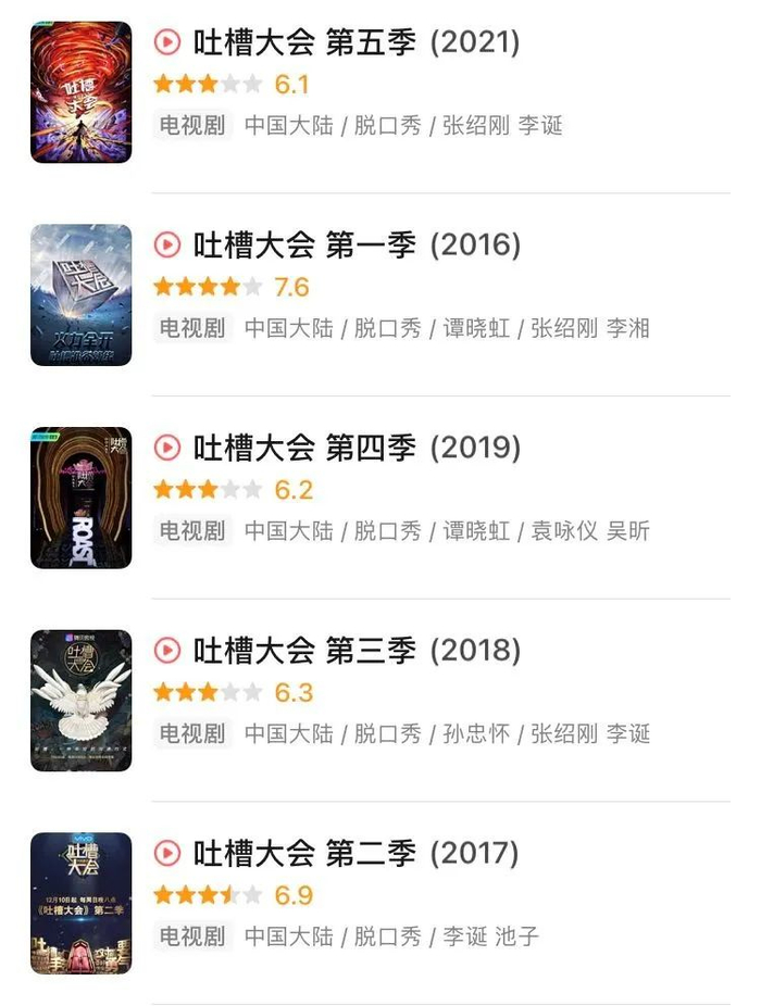 《吐槽大会》五季豆瓣评分