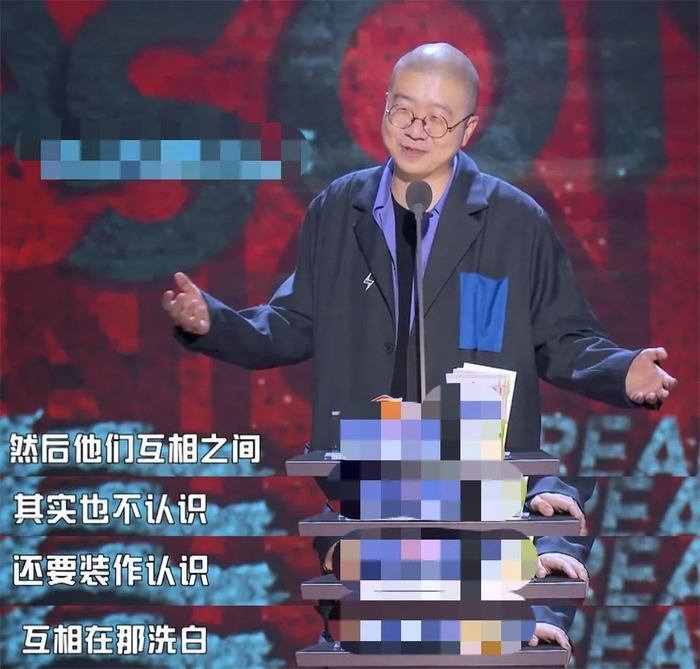 选人缺乏新鲜感就算了,另一大问题是,这21人里很多人彼此是完全不相识的,他们的吐槽文本全部就依赖于编剧写。当初《吐槽大会》邀请的吐槽嘉宾是主咖的亲朋好友,他们常常能给编剧贡献一些主咖不为人知的槽点。《吐槽大会2》就渐渐“去亲友化”,吐槽嘉宾与主咖可能根本就不熟。又想起了李诞自个说的,“一群不认识的人,假装互相认识,互相洗白”。《吐槽大会5》这阵容,不正是“一群不认识的人”吗?