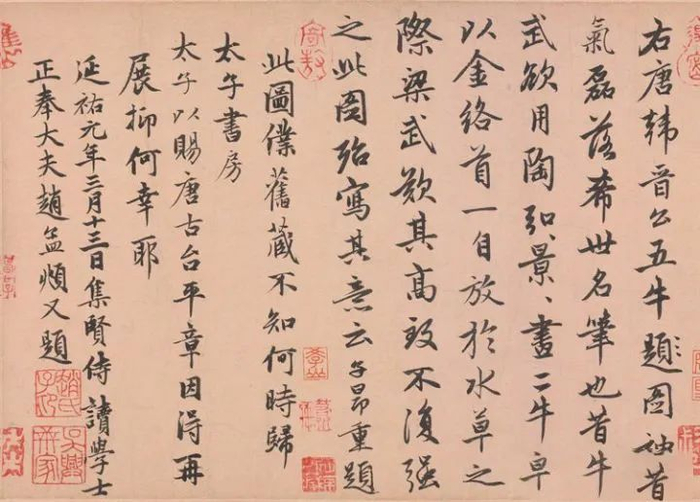 等到了清代,乾隆帝当然也不能错过。他自己题诗还不够,大臣也要一个挨一个在卷后题跋。
