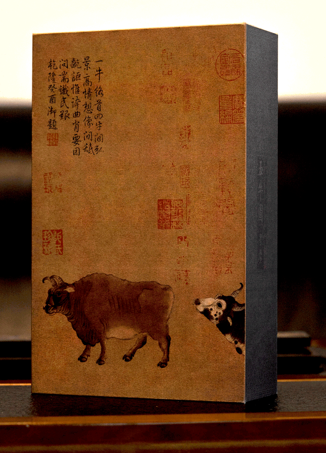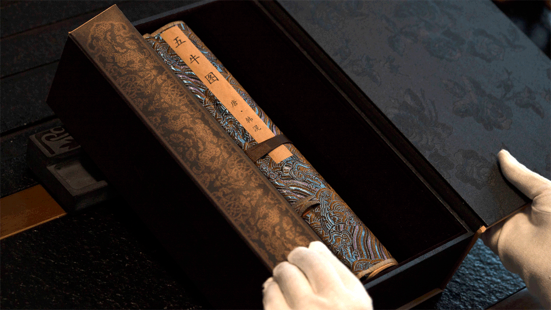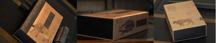 盒身上截取《五牛图》中的精华核心部分作为装裱,让人未开此盒,便首先感受到这幅千古奇画的震撼气质。