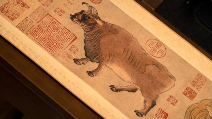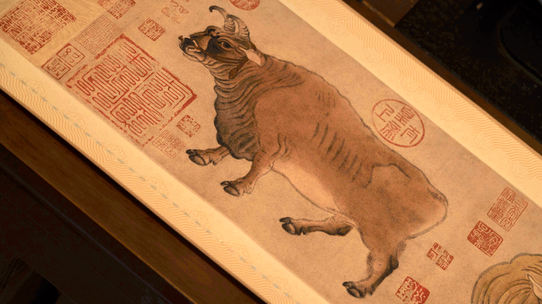 在此基础上,北京市印刷技术研究所紧急集合业内的多位专家学者,使用精湛、高端彩印技术,1:1原作复刻,才终于让饱经风霜的《五牛图》再现于世。