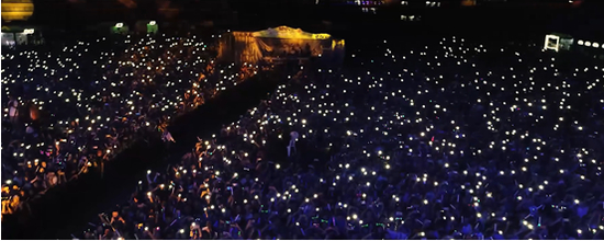 一位帅气的男孩满头大汗地奔向焦急等街的恋人,随后牵手跑进会场,共赴一场人声鼎沸的明星演唱会。荧光棒汇成的光海绚烂夺目,此起彼伏的欢呼燃爆全场,当熟悉的场景再次回归,现场观众们都在尽情释放蛰伏已久的热情与感动。“有些灯火黯淡了,却终会闪耀。”