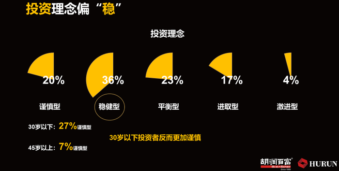 投资理念上,36%的高净值人群持“稳健型”投资理念,23%为“平衡型”,20%为“谨慎型”,17%为“进取型”。