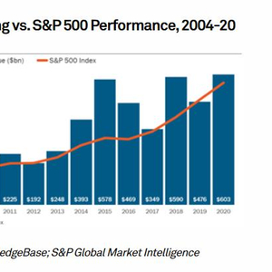 △2004—2020年科技企业并购支出与标普500指数对照图(图片来源:标普全球市场情报)