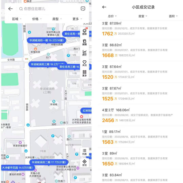 但深圳房价上涨很大程度上是二手房价格上涨导致的。新房房价可以通过卖地限价、预售定价、批售控制、开发商“窗口指导”等多种方式进行价格调控,但二手房市场调控却相对困难,缺乏调控的抓手,所以二手房的交易量价是由千千万万的交易者驱动的。在2019年底就发生了中粮凤凰里、恒裕槟城业主“暴力拉升”二手房价的情况。出现相同地段内二手房的每平方米成交单价高于新建中的一手房,即价格倒挂。