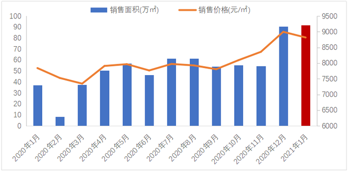 图:2020年1月至2021年1月连云港商品住宅成交量价走势