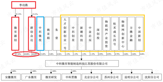 截至2020年11月,中科微至无控股股东,实际控制人李功燕直接持有公司20.08%股权并通过微至源创、群创众达间接控制中科微至27.38%及20.08%股权,最终合计持有公司67.54%股权。
