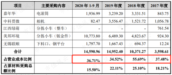 2017年~2020年9月,中科微至持续向中科贯微、美邦环境、嘉年华、无锡联顺等关联方采购智能相机、分拣小车、电滚筒等分拣系统组成产品或配件。