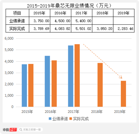 与A股大部分上市公司的并购案例一样,标的公司过了业绩承诺期后,业绩随即变脸或下滑,鼎芯无限在2018年净利润下降30%,2019年继续下降40%。
