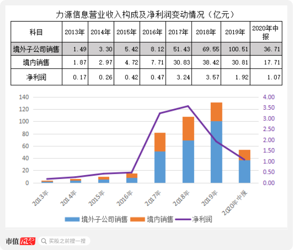 从上方图表可清晰看出,力源信息综合毛利率逐年下滑,2019年跌至5.3%。