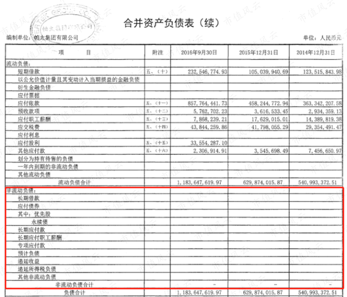 令人颇为奇怪的是,帕太集团合并报表中的非流动负债居然为0,有图有真相。