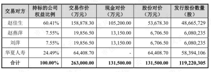 此次交易全部股份对价:以5.72元/股的价格向侯老板等股东定向发行2478.15万股,锁定期12个月。