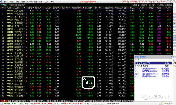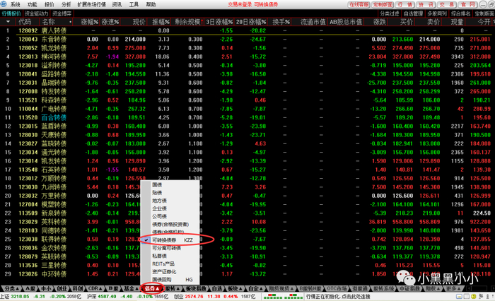 对通达信中输入“HKZZ”(“含可转债”的拼音首字母)进入,即得到所有含可转债的正股。