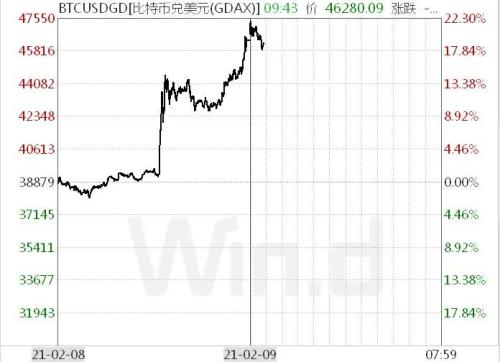 特斯拉购买比特币的消息传出之后,比特币大幅拉升,目前交易于46000美元上方。