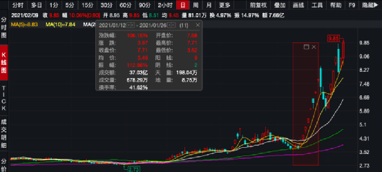 今年1月,陕西黑猫 8天内走出7个涨停板。在短短14个交易日内,该股大涨超106%。