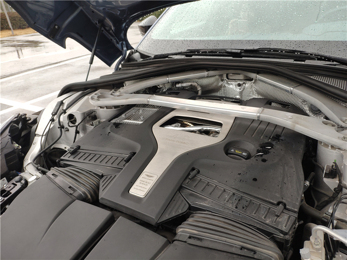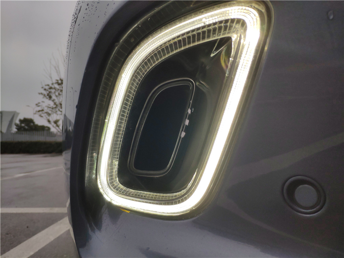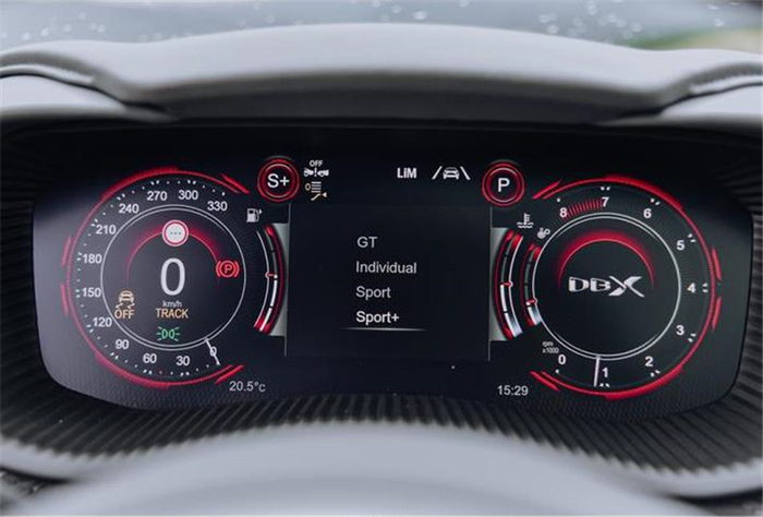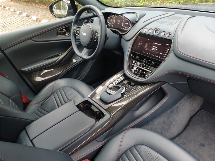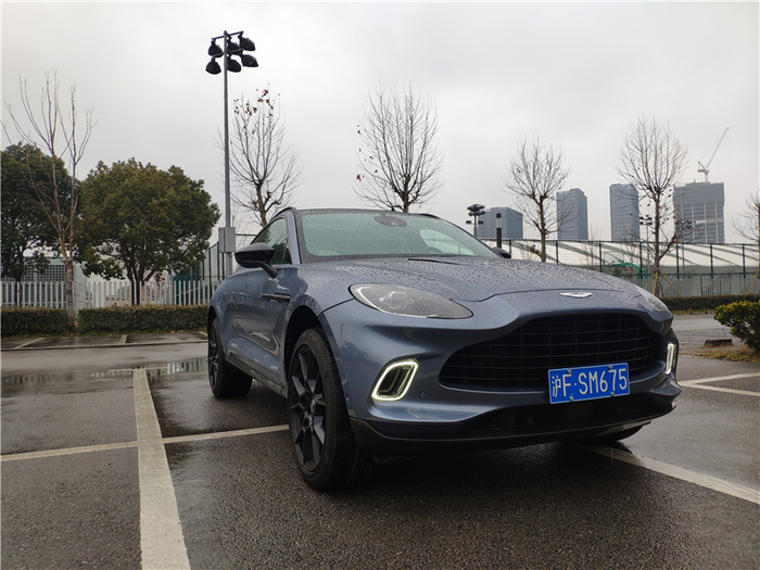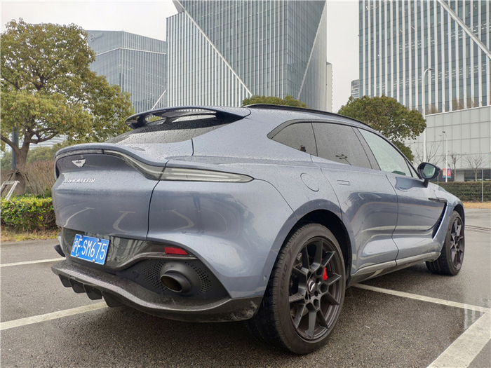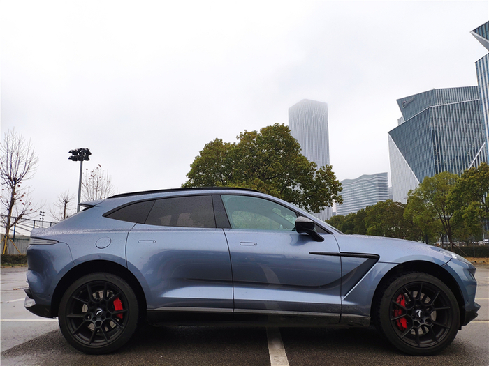 虽然之前在图片上看到过无数次,但真正站在实车边上时,那种由阿斯顿·马丁设计师精雕细琢而出的精致感和气场才能真正感受到。长头、短尾、溜背,加上饱满的造型与动人的曲线,让眼前这台DBX宛如一个刚刚从007电影中走出的、身姿曼妙的邦女郎。带有散热孔的蚌式发动机盖、分体式大灯、David Brown前脸、阿斯顿山格栅、向上12°开启的前后车门、翼子板上的风道以及完全曲面的设计,每一个都是阿斯顿·马丁品牌的经典元素,彰显着它的生而不凡。当然,在DBX身上也不全是致敬的元素,创新也是它重要的一环。为了优化空气动力学,下方雾灯中间的风道直通前轮拱,对前部的气流可以更好的疏导,在车门的下部的空气隧道设计似乎能看到风流动的方向。如果选择了碳纤维运动套件,车尾下方还会增加碳纤维扩散器。而这一切创新元素,并没有破坏它的美感。超过5米的车长(5039mm)、超过3米的轴距(3060mm),却没有给它任何“庞大”或者“臃肿”的感觉,严格遵循黄金比例分割的设计、如跑车般超长的Dash to Axle Distance(仪表台到前轴的距离)让它看上去俨然就是一台拉高了底盘的GT跑车,尤其是侧后方,有一种宛如Vantage一般的美感。只有在停车以及在狭窄城区穿行时,超长的轴距才会给人造成一定的困扰。