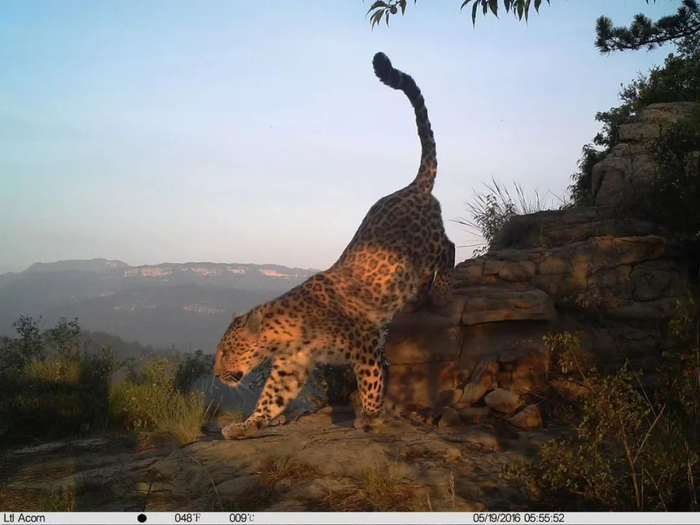 山西省和顺县的红外相机中出现过一只雄性豹王,领地足有三百平方公里,相当于北京四环内的面积;领地内最多时有四只母豹长住。
