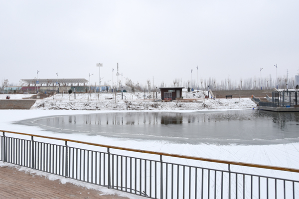 2021年1月5日,拉齐尼·巴依卡勇救落水儿童的湖面。图|新华社