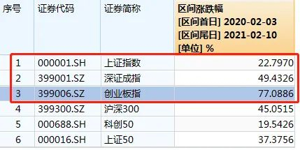 鼠年,上证指数上涨22.8%,创业板指数大涨77.09%。创业板权重股当中,新能源、医疗等权重股表现生猛,如宁德时代、爱尔眼科等。