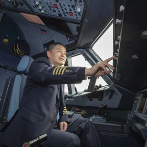 2021年2月6日,重庆江北国际机场,即将年满60岁的重庆航空公司一名空客A320机型资深机长教员李晶对执飞航班进行航前驾驶舱检查(黄伟/摄)