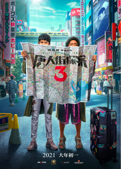 “唐探模式”的首要特征,是唐人街构筑的异域空间。《唐探1》的故事发生在泰国曼谷唐人街,《唐探2》的故事发生在美国纽约唐人街,这回《唐探3》的故事缘起也是日本唐人街。
