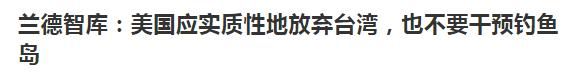 近期,国内一些自媒体和个别新闻网站报道称,美国知名智库兰德公司近期向美国政府提交报告,建议美国政府“实质性放弃台湾”、不干预中日领土争端等。此类报道的大致主题如下: