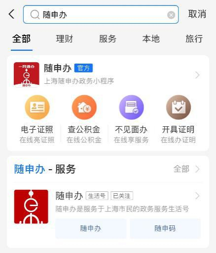 1、打开“随申办”APP,在支付宝、微信中搜索并进入“随申办”小程序