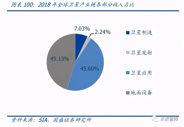 卫星互联网发展潜力巨大,应用场景广阔。依据美国卫星工业协会(SIA)的统计,2018 年全球卫星产业总收入为 2774 亿美元,其中卫星制造为 195 亿美元,增速已升至 28%。全球通信卫星产业总收入约 1200 亿美元,若我们简单地类比卫星制造所占份额,则 2018 年卫星制造市场空间为 84 亿美元,审慎按年增速 20%计算,则 2025 年将达到 300 亿 美元。卫星互联网产业可以分为组网、应用两个阶段。组网市场包括:卫星制造、发射、 联网、维护等相关业务,是卫星互联网重要的前端市场,也将在未来若干年硬件快速投 入的情形下将率先迎来快速成长阶段。