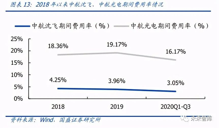 军工板块及推出股权激励方案的代表公司期间费用率均有所下降。从板块看,得益于国 企改革稳步推进和军工上市公司经营效率的提升,2015-2020Q3 军工行业期间费用率整 体稳定并出现小幅下降,其中 2020Q1-Q3 较 2015 年销售费用率、财务费用率分别下降 0.41pct、0.88pct;管理费用率方面随着军工企业持续加大研发投入,整体呈现稳中有升 态势。个股方面,2020Q1-Q3 中航沈飞和中航光电期间费用率分别为 3.05%、16.17%, 较 2018 年分别下降 1.20pct、2.19pct,公司经营效率稳步提升、降本增效成果显著。