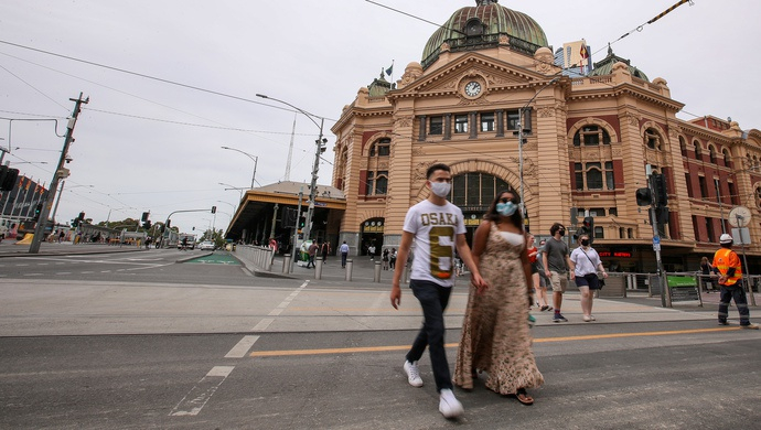 维多利亚州州长丹尼尔·安德鲁斯12日在新闻发布会上说,全州从13日起封城5天。在此期间,禁止公共场合人群聚集,人们外出必须戴口罩,仅允许人们因从事“必要的”活动离家,比如购物和锻炼身体。