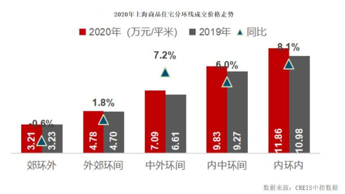 值得一提的是,横盘3年的上海房价从2020年初开启上涨行情,成交均价突破5万元/平方米。从2019年底的47404元/平方米上涨至2020年11月的50097元/平方米,也即2020年前11月上海新房成交均价累计上涨5.68%,涨幅在中指百城中居第13位。