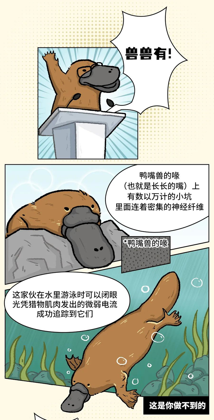 比如虽然可达鸭有超能力这一点,可能是取材于鸟类可以辨别磁场的现象,但自己身为鸭嘴兽,有感受微弱电流的能力,这个能力也挺超能力的;