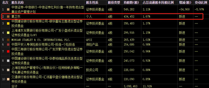 葛卫东以百亿持仓雄踞榜首