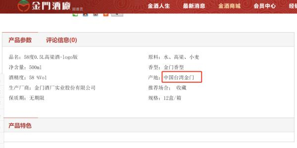 “金酒西进 产地竟变‘中国台湾’”,新年伊始,台湾亲绿媒体又开始炒作。《自由时报》在13日以此为题的报道中称,金门酒厂在大陆的全资子公司“金门酒厂(厦门)贸易有限公司”,其简体网站的金酒商城上所卖各种高粱酒产品,产地均标注“中国金门”。有岛内专家对此吐槽说,东西要卖到大陆就是得被“吃豆腐”。报道还援引金酒厦门公司总经理曾资文的说法称,酒品产地写上“中国金门”是因应当地针对商品登上电商平台的规定,公司会争取把它拿掉。而曾资文14日接受环球网记者采访时表示,金门高粱酒会完全遵守大陆电商平台的规定上线。