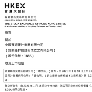 1月18号,港交所正式将汇源果汁摘牌退市。