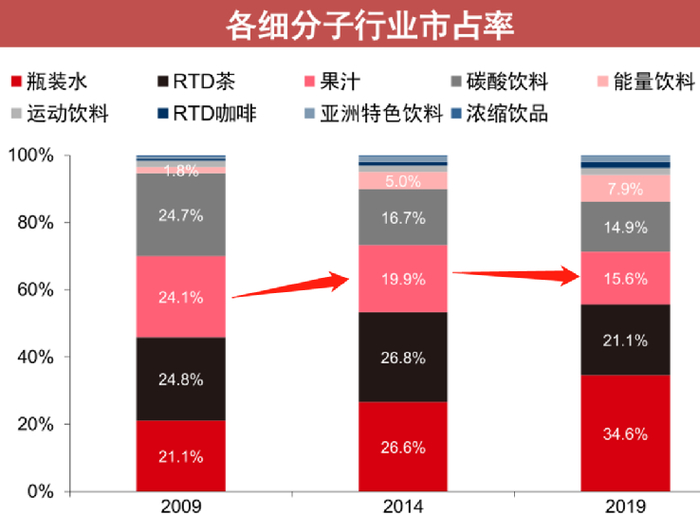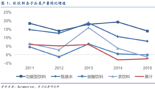 几大饮料门类中果汁增速最低