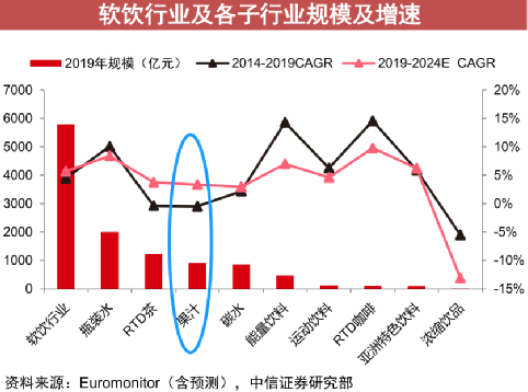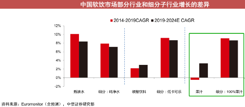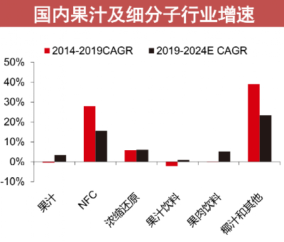 果汁是饮料中为数不多的,预计未来5年比过去5年增速更快的行业。