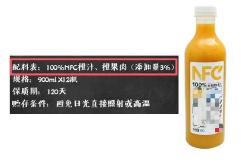 真正的高浓度、鲜榨、纯果汁,叫NFC,英文是Not From Concentrate,也就是非浓缩还原果汁,价格比较高,保质期也较短。