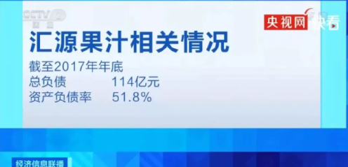 我们只知道截至2017年,汇源总负债114亿,一年要交给银行等渠道的利息就高达5亿左右。