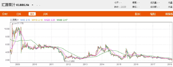 然而,截至最后一个交易日,汇源果汁总市值仅剩54亿港元。