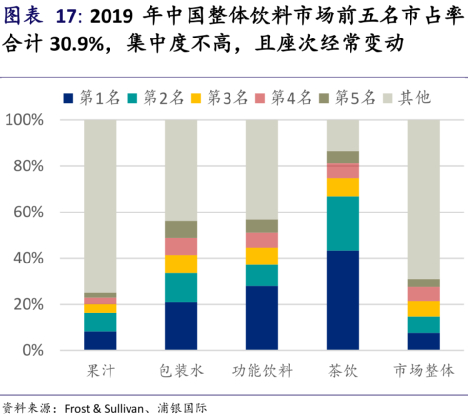 而中国果汁TOP5的市占率又是所有软饮中最低的。
