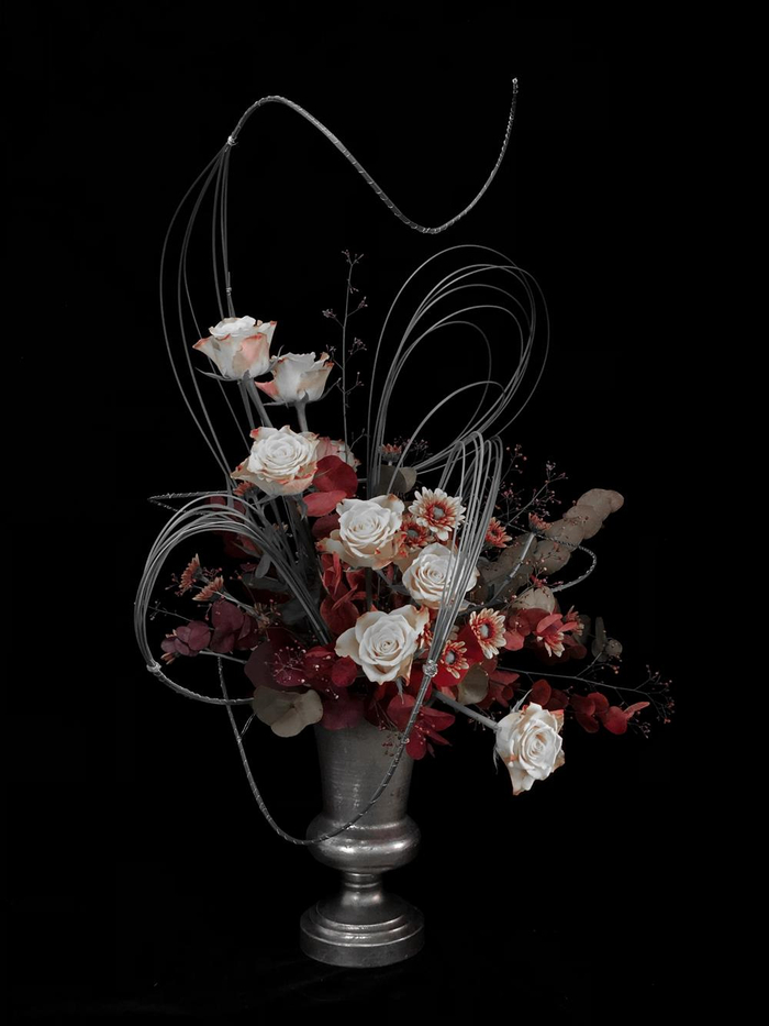 花艺的种子就此在心中种下。回国后的一次生日聚会上,蔡振君收到朋友送的一份花艺礼物,用的是白色帝王花,颇有男子气概。“原先我以为花只属于女生,没想到也可以霸气得这么好看。”