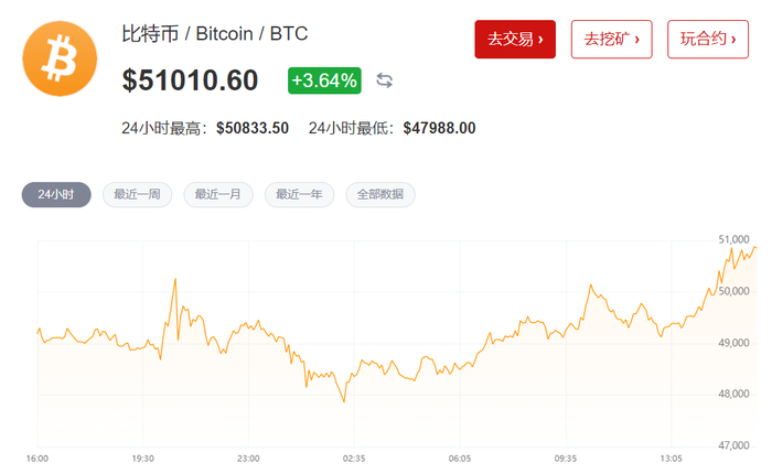 4、比特币一路上涨,连创历史新高,2月17日突破51000美元。