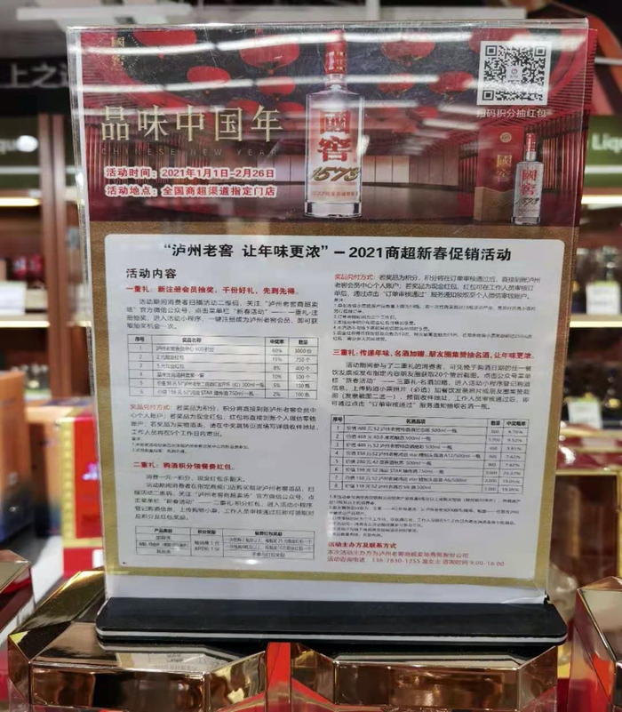 (1)泸州老窖:购买1/3箱分别送对应的餐具,以及具备商超新春促销活动
