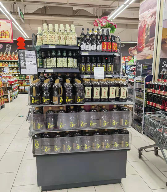 (2)货架摆放:酱油共3个大货架,厨邦及千禾0.5个,李锦记、味事达1个,海天1个。