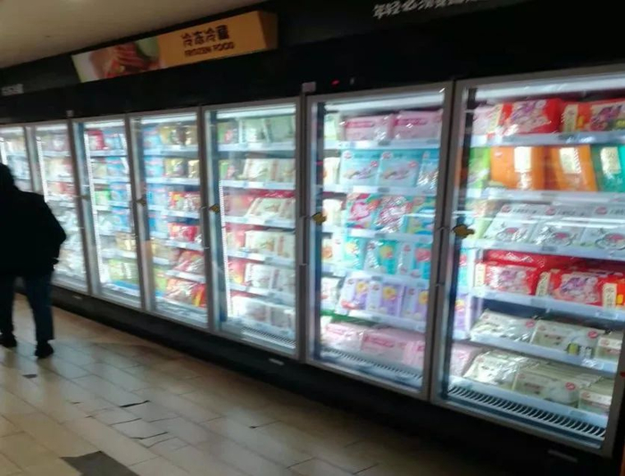 超市陈列:共20个货架,其中三全食品约占7.5个货架,思念约占8个货架,安井约占1个货架。