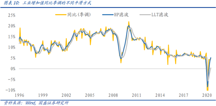 样本内全局平滑:在进行某个时间点的数据平滑时,会使用到未来数据进行平滑。在进行样本内领先指标筛选时使用全局平滑的方式进行降噪。本文使用的是高效和常用的HP滤波。
