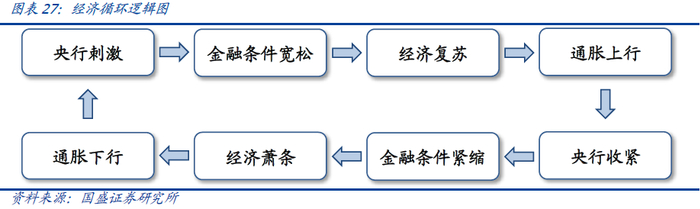 经济周期的循环主要由两条链路构成:央行对经济与通胀的逆周期调节作用;经济复苏对通胀的拉动。