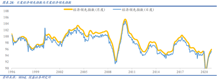 通过框架构建出的经济领先指数不仅能够得到日度经济景气度的走势,同时也可以转化为宏观监测工具: