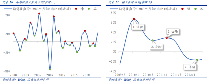 步骤二:拐点筛选。在得到局部极值点后需要满足以下经验标准,从而保证周期不会过短而失去经济学意义: